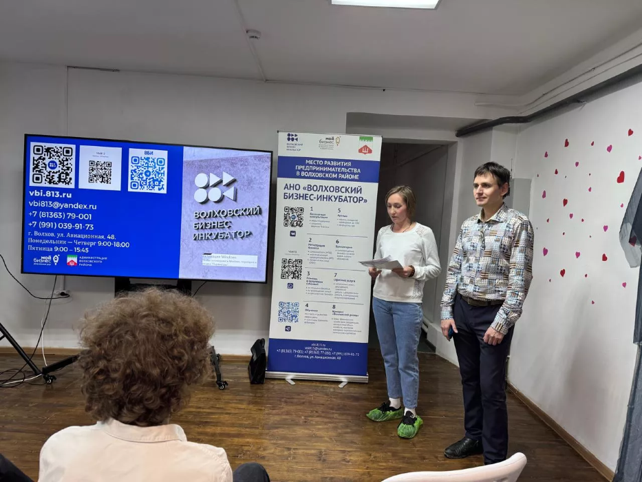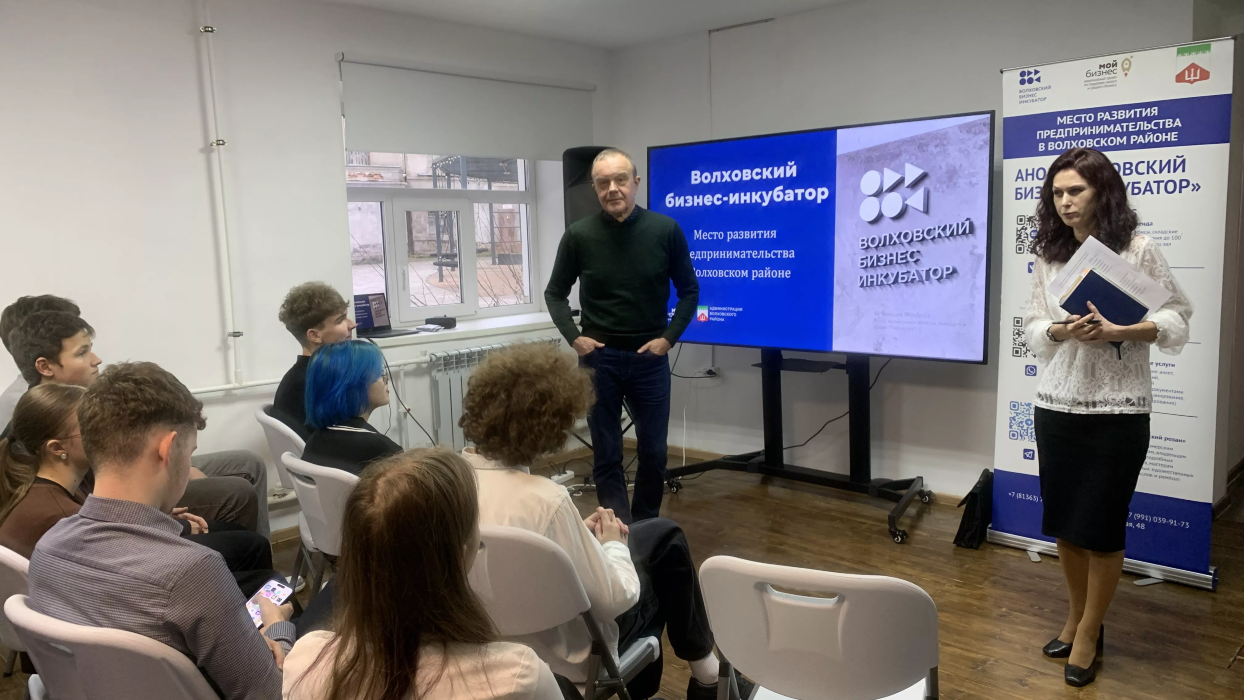 Сотрудники Волховского Бизнес-Инкубатора в лице помощника руководителя Павлова А.А., начальника сектора обучения и консультаций Лобанова М.С., а также экономист администрации Новоладожского городского поселения Есенина Н.Г. и действующий предприниматель Рязанова С.О. провели презентацию об актуальности ведения предпринимательской деятельности в Волховском районе, об особенностях, преимуществах и сложностях этой профессии, существующих мерах государственной поддержки начинающим предпринимателям.