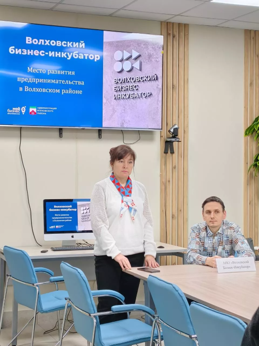 Представитель Волховского Бизнес-Инкубатора провёл презентацию и поделился важной информацией о процессе регистрации в статусе самозанятого, а также о мерах поддержки субъектов МСП в 2026 году.