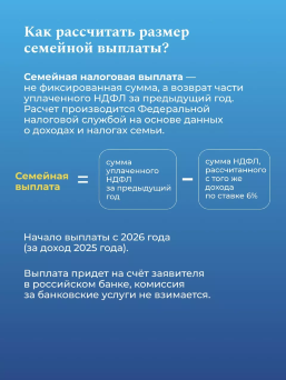 По оценкам правительства, сумма выплаты составит от 56 тысяч до 189 тысяч рублей в год в зависимости от количества детей и уплаченного НДФЛ.